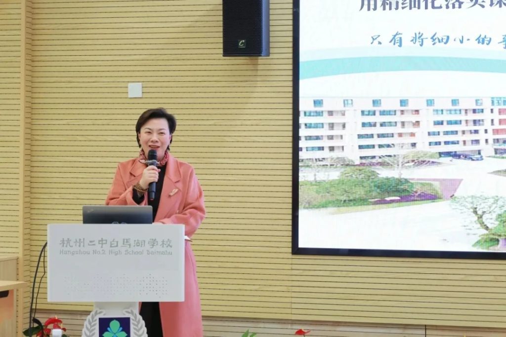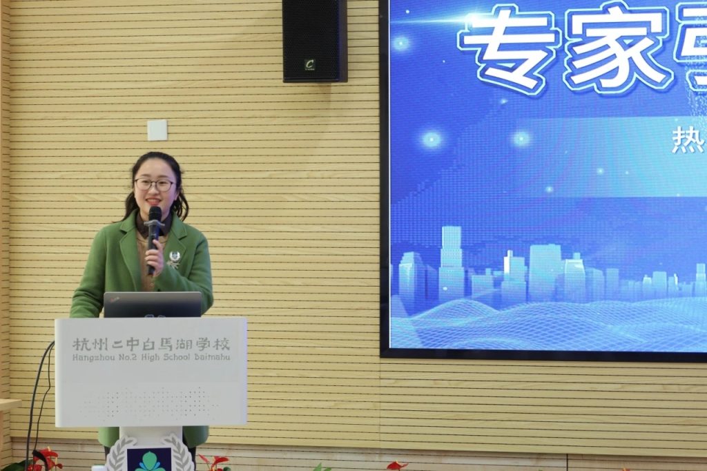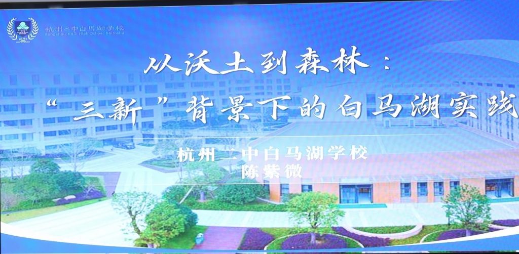 杭州二中白马湖学校陈紫微副校长作《从沃土到森林:三新背景下的白马湖实践》专题讲座,系统阐述学校育人理念与改革路径。白马湖以集团教研共同体与跨区域联动为支撑,建立数据驱动的质量监测闭环,以深度教研提质赋能课堂教学高质量发展。