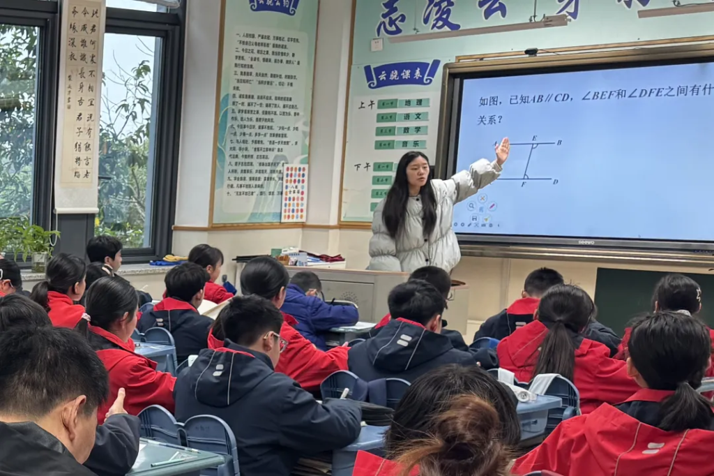 数学组教师大胆创新教学设计,突出学生主体地位,注重思维过程与表达规范。张颖翡老师《平行线的性质》教学设计新颖,学生作答规范严谨;杨亚妮老师《函数》复习课选题精准,紧扣中考考点。